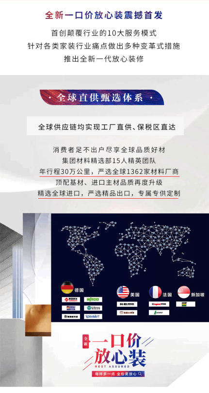 全新一口價(jià)放心裝”新品,品質(zhì)匹配價(jià)值新需求,以創(chuàng)新顛覆傳統(tǒng)模式,以品質(zhì)引領(lǐng)行業(yè)風(fēng)向,每樣多一點(diǎn),全包更放心,領(lǐng)軍實(shí)力成就全包新高度。