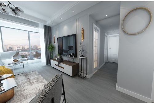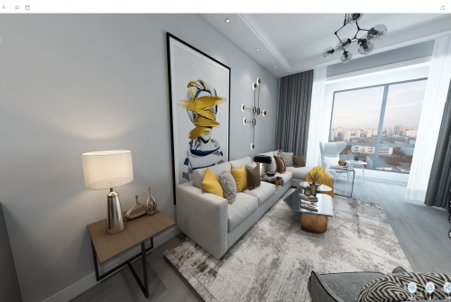 ? 淺灰色的地面和剛剛淺灰色的沙發(fā)同一個色系,白色的墻面上偶爾在空白處點綴一些精致的飾物設計,兩邊空曠很少雜物。