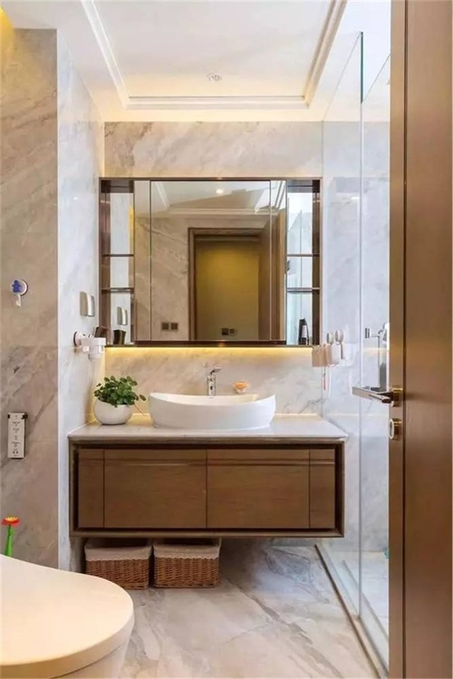 ? 衛(wèi)生間的空間不大但是在設計上卻是盡最大可能做了干濕的分離設計,這樣淋浴間的水不會搞得整個衛(wèi)生間都是,每次使用后都要打掃衛(wèi)生,干區(qū)的洗漱臺做的是鏡面柜和臺下柜雙收納設計。