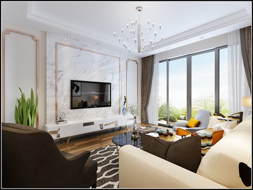 仿大理石的墻磚作為背景墻既時(shí)尚又不健康,采用白色帶雜色的花紋墻磚設(shè)計(jì)四周用金色的邊框繪制成想要的邊框造型,在白色的墻面上金色的顯得更加精致。