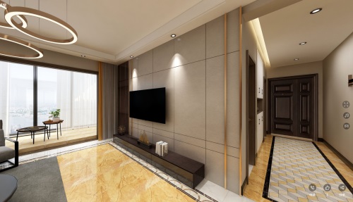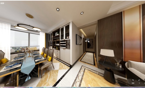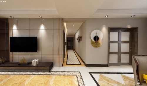 客廳整體上都帶有金屬色設(shè)計,在一些邊框和細(xì)節(jié)裝飾物上都是采用金色的邊框作為裝飾。