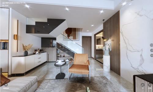 由于這戶是一套161㎡的躍層所以樓梯口的空間也沒有浪費(fèi)而是做成收納柜,這樣家里有再多東西都不怕裝不下了。