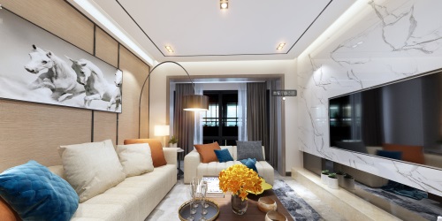 ?現(xiàn)代風(fēng)格主要以實(shí)用和簡(jiǎn)潔為主設(shè)計(jì),在這套設(shè)計(jì)上客廳以深淺色的搭配配色,米白色的沙發(fā)上是各色亮色的抱枕。