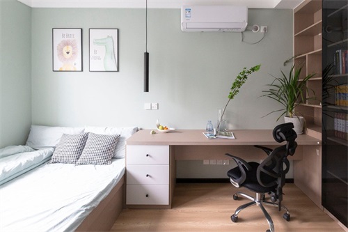 次臥兒童房以淡淡的清新顏色為主,中間留有一個(gè)寬敞的空間作為日后和孩子的娛樂空間,更加促進(jìn)父母和孩子的交流。