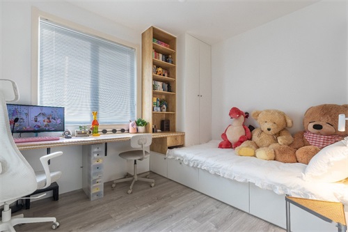 多功能房目前屋主夫妻都沒有孩子就作為兩人的工作娛樂房,房間有一排兩人位的長桌還有一張小型的榻榻米床,后期也方便做功能轉(zhuǎn)變。