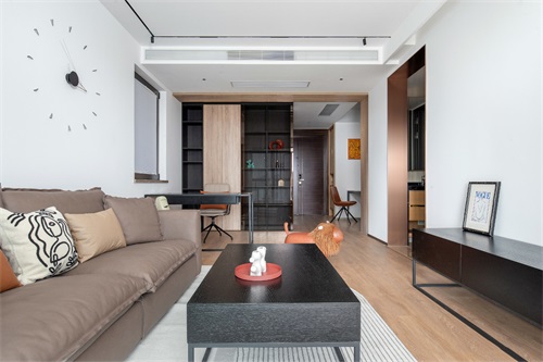 遵義裝修公司小編今天給大家介紹一套90㎡精裝房改造,簡約的通體白墻設(shè)計(jì)只需要簡單的裝飾,咖色的雙人座沙發(fā)質(zhì)感舒適,邊上置放一個小邊桌置物藝術(shù)感滿滿,客廳桌設(shè)計(jì)一個小型的抽屜遙控器和雜物都可輕松收納。